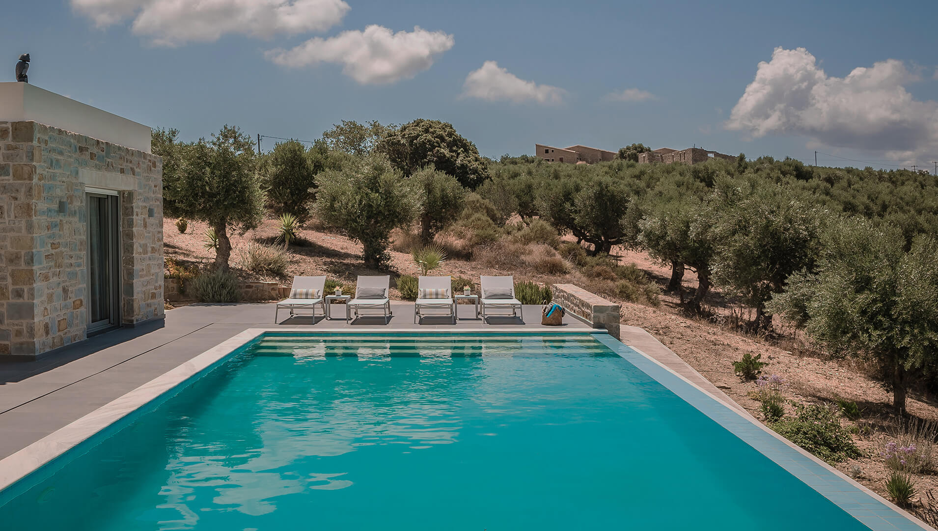 Unsere neu erbauten Villen bieten modernen, luxuriösen Wohnstandard und liegen dabei eingebettet in die wunderschöne Natur der Peloponnes.