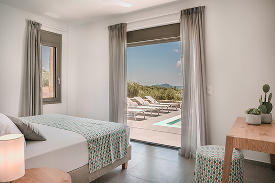 Umrandet von Olivenbäumen stehen die geräumigen Villen in ruhiger Lage auf dem Hügel von Tapia. Beide Villen bieten höchsten Wohnstandard mit allen Annehmlichkeiten: von der Vollklimatisierung bis zum beheizbaren Infinity Pool – und nicht zu vergessen – dem Sonnenuntergang über dem Ionischen Meer.